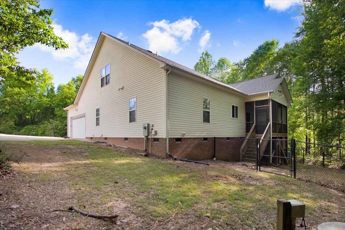 Time to book a Tour. Open concept 3 bedroom home in Clayton on over 2 acres. Living/Dining room has a fireplace and LVP Flooring throughout. Wainscoting wall panels are a beautiful addition to this home. Tons of cabinet space in the kitchen. Desirable split bedroom design. The primary bathroom features double vanity sinks, Tile shower and large walk in closet. Enjoy the view of the large back yard from the deck or sit on your front SCREENED porch! Refrigerator, Washer, Dryer, Storage Shed, Tankless Hot Water Heater, Living Room TV and wall mount all convey. This is a must see home!