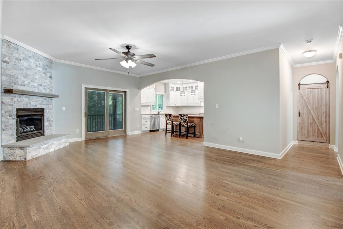 THIS IS THE ONE! This HUGE Ranch on 1.3 Acres Has Something For Everyone! NO HOA! NEW ROOF 2023! Glorious Oak Hardwoods Throughout the First Floor Living Areas - Custom Stone Wall Fireplace in the Living Room, GORGEOUS Custom Renovated Chef's Kitchen Featuring Custom Cabinets, Premium Granite, GAS Cooktop, Wall Oven, Large Pantry, BRAND NEW GE Appliances - Refrigerator Included! Crown Molding Throughout - Formal Dining Room AND Separate Office - First Floor Owner's Suite Features HUGE Walk-In Closet, Tiled Shower & Garden Tub. Laminate Flooring in First Floor Bedrooms. Custom Drop Zone & Laundry Space Leading In From Garage. Upstairs You Will Find OODLES More Space Including a GIGANTIC Recreation Room, FULL Bathroom, & THREE MORE ROOMS That Could Be Used For Crafts, School Room, Home Gym, Guests - You Name It!! If You Love Privacy You Will Love This Yard - Screen Porch Overlooking Nature - Seller Confirmed There Is Room To Add a Backyard Oasis With a POOL - The Sky Is The Limit! Small Fenced Area For Pets, Wander Around Near the Community Pond Next Door. Septic Field Is Off-Site. This is a must see home!